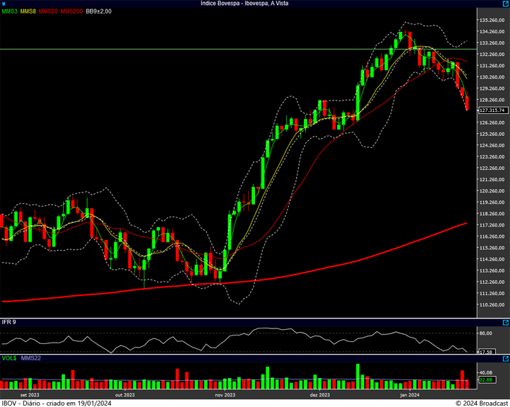 Abrimos respirando, chegando nos 129 mil pontos. Mas não teve forças para ir além disso. Voltamos a cair. E voltamos forte …