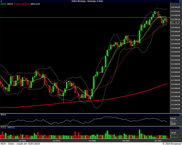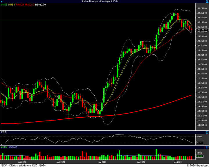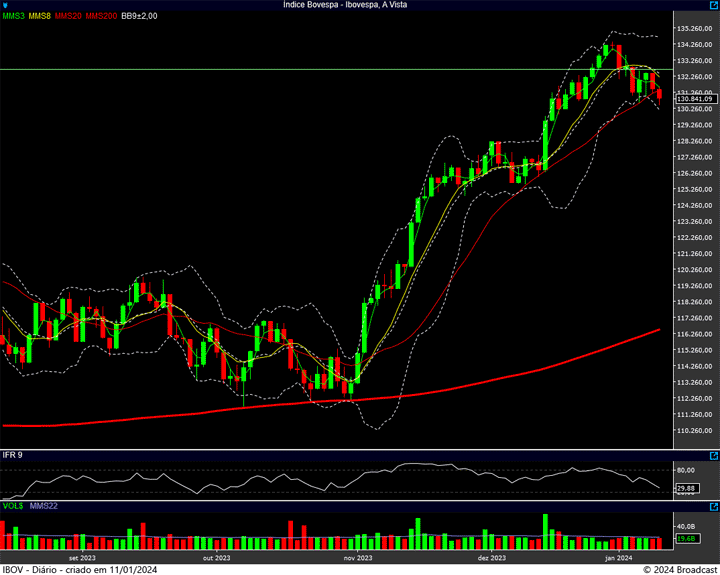 Lembrando: o suporte atual está justamente na região dos 130.700 pontos, enquanto a resistência está nos 132.650 pontos. Mas se formos olhar a “floresta”, é o suporte dos 125 mil pontos, e a resistência (ATH) dos 134.400 pontos que realmente importam.
