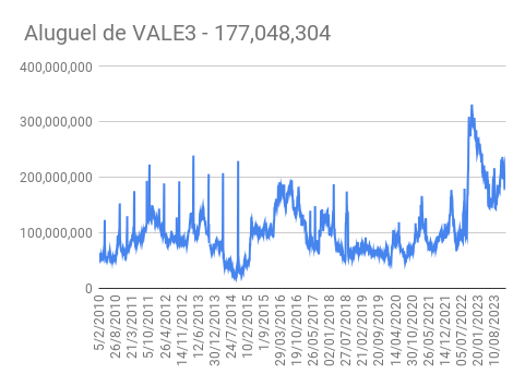 Este é um dado que acompanho diariamente, serve para que eu veja o “peso” extra que existe sobre estas ações. Normalmente – veja bem, normalmente … – um aumento na posição alugada pode significar um movimento de queda no papel. E o contrário também é verdadeiro, uma cobertura pode significar um movimento de alta.