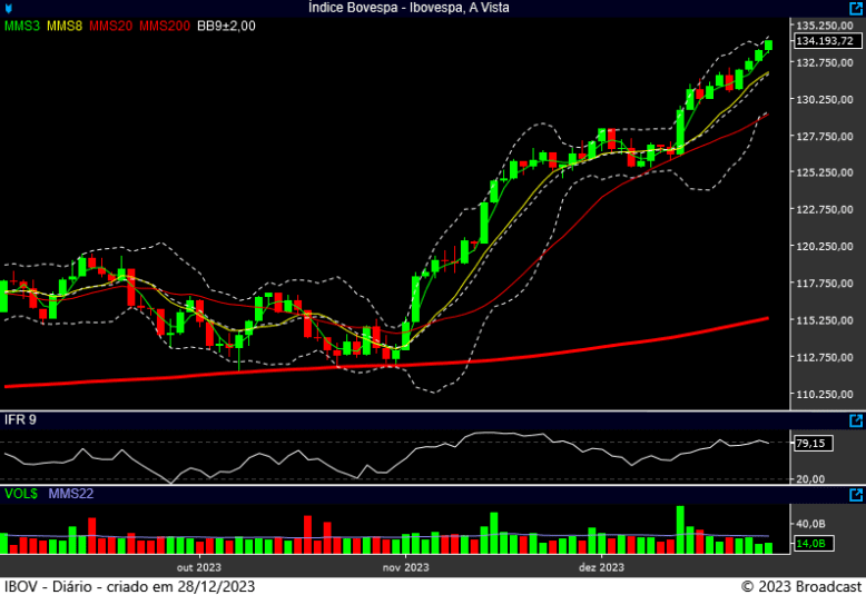 Bom, rompemos para valer a região dos 133 mil pontos. (que por sinal, era o alvo do pivot de alta iniciado lááá em 2020, na pandemia)