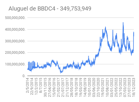 Este é um dado que acompanho diariamente, serve para que eu veja o “peso” extra que existe sobre estas ações. Normalmente – veja bem, normalmente … – um aumento na posição alugada pode significar um movimento de queda no papel. E o contrário também é verdadeiro, uma cobertura pode significar um movimento de alta.