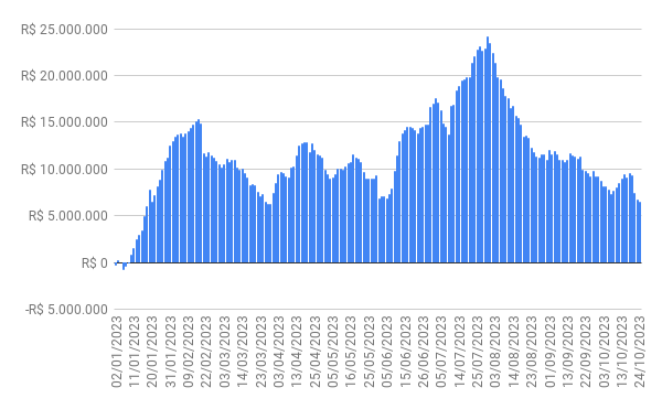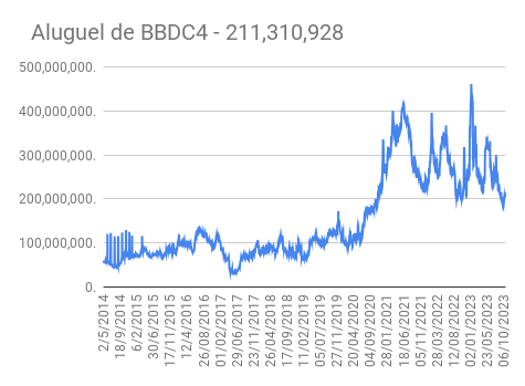 Este é um dado que acompanho diariamente, serve para que eu veja o “peso” extra que existe sobre estas ações. Normalmente – veja bem, normalmente … – um aumento na posição alugada pode significar um movimento de queda no papel. E o contrário também é verdadeiro, uma cobertura pode significar um movimento de alta.