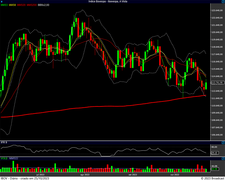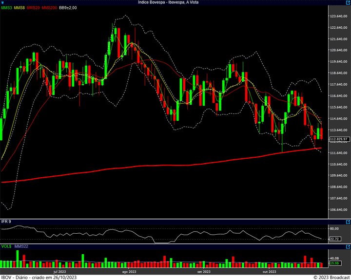 Para baixo, temos a região entre o 111.500 pontos (fundo anterior) e os 112 mil pontos (média de 200 dias) atuando como suporte.