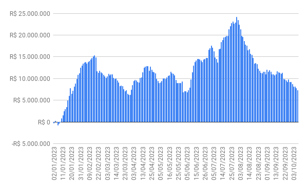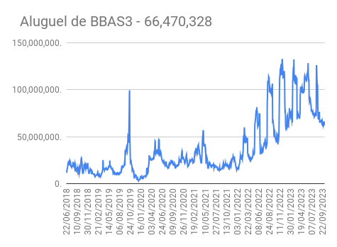 Este é um dado que acompanho diariamente, serve para que eu veja o “peso” extra que existe sobre estas ações. Normalmente – veja bem, normalmente … – um aumento na posição alugada pode significar um movimento de queda no papel. E o contrário também é verdadeiro, uma cobertura pode significar um movimento de alta.