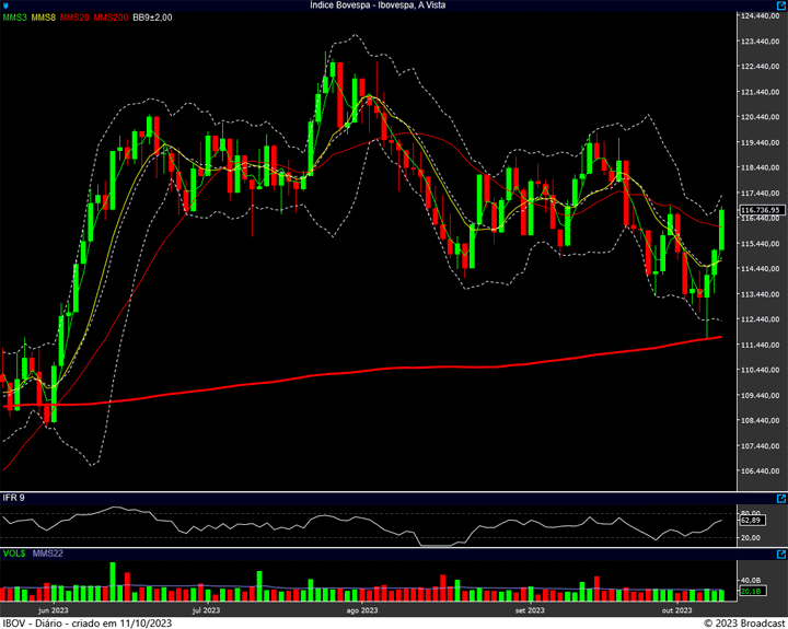 116.900/117 mil pontos é a barreira a ser rompida. Se conseguir, precisa romper os 120k para “confirmar” …