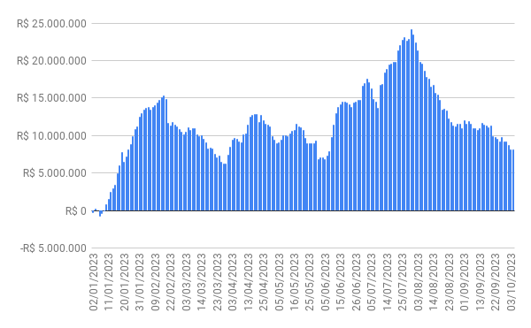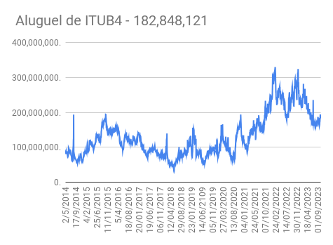 Este é um dado que acompanho diariamente, serve para que eu veja o “peso” extra que existe sobre estas ações. Normalmente – veja bem, normalmente … – um aumento na posição alugada pode significar um movimento de queda no papel. E o contrário também é verdadeiro, uma cobertura pode significar um movimento de alta.
