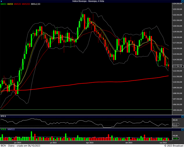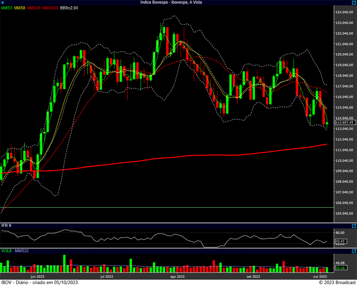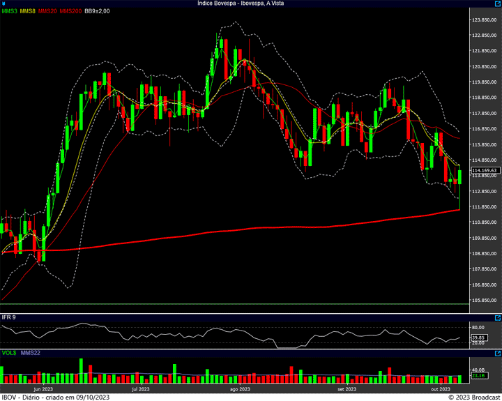Pois então, a resistência hoje será mantida: a região dos 114.400 pontos. (ampliaremos para 114.600, a máxima de sexta-feira) Já o suporte, permanece na na região dos 111.500 pontos, onde se encontra a média de 200 dias. 😉