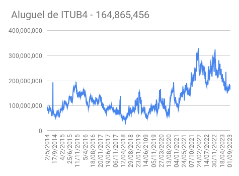Este é um dado que acompanho diariamente, serve para que eu veja o “peso” extra que existe sobre estas ações. Normalmente – veja bem, normalmente … – um aumento na posição alugada pode significar um movimento de queda no papel. E o contrário também é verdadeiro, uma cobertura pode significar um movimento de alta.
