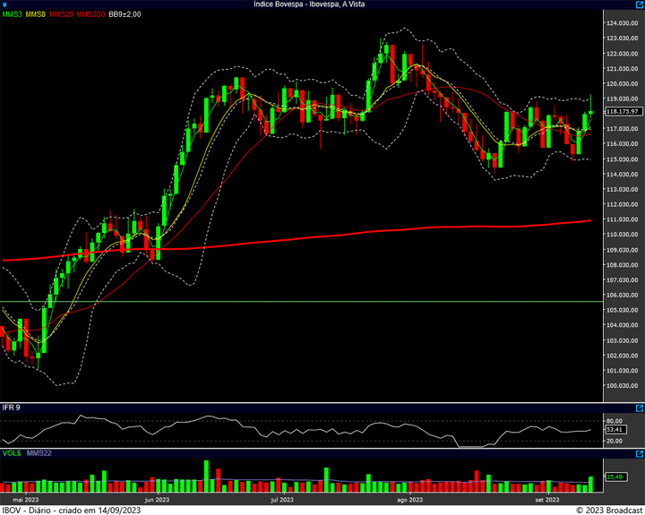 Depois de 3 tentativas, com uma 4ª no pregão de quarta-feira, ontem conseguimos ver o índice rompendo a região dos 118 mil pontos.