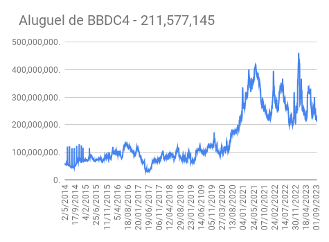 Este é um dado que acompanho diariamente, serve para que eu veja o “peso” extra que existe sobre estas ações. Normalmente – veja bem, normalmente … – um aumento na posição alugada pode significar um movimento de queda no papel. E o contrário também é verdadeiro, uma cobertura pode significar um movimento de alta.