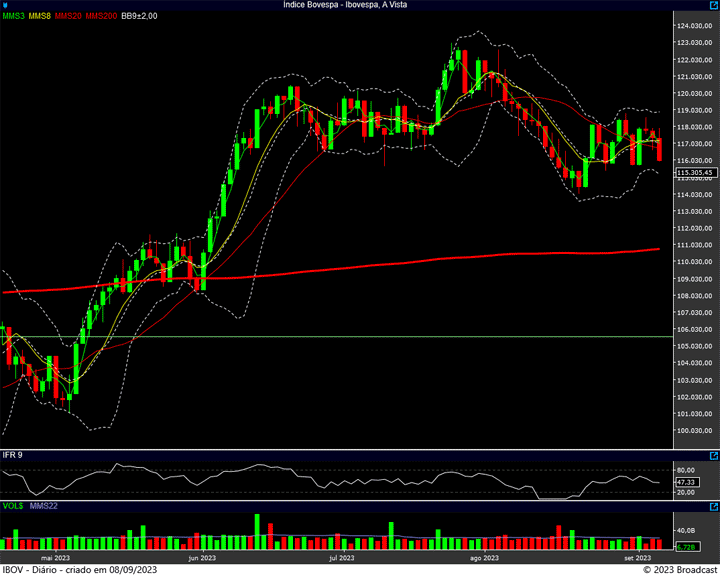 Se conseguir perder o apoio, o próximo suporte estará na região dos 114 mil pontos. O seguinte ? Lá nos 108 mil, se não encontrar nenhuma ajuda nos 111k, que é onde se encontra a média de 200 dias atualmente.
