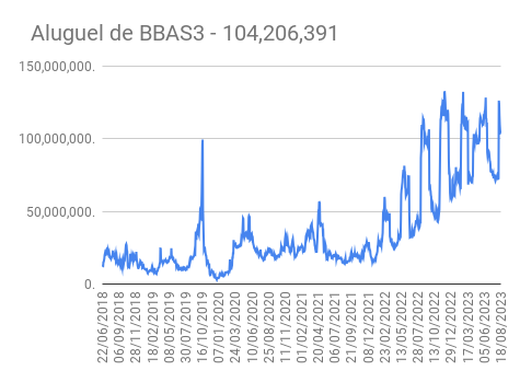 Este é um dado que acompanho diariamente, serve para que eu veja o “peso” extra que existe sobre estas ações. Normalmente – veja bem, normalmente … – um aumento na posição alugada pode significar um movimento de queda no papel. E o contrário também é verdadeiro, uma cobertura pode significar um movimento de alta.