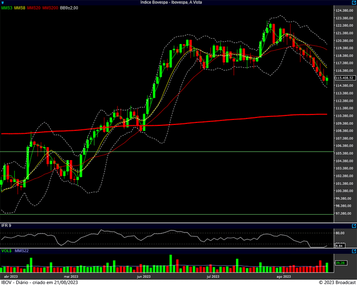 Lembrando que conforme disse ontem, os números curtos do momento são: suporte no 114.400 pontos (justamente onde fechamos !), e resistência nos 115.750 pontos.