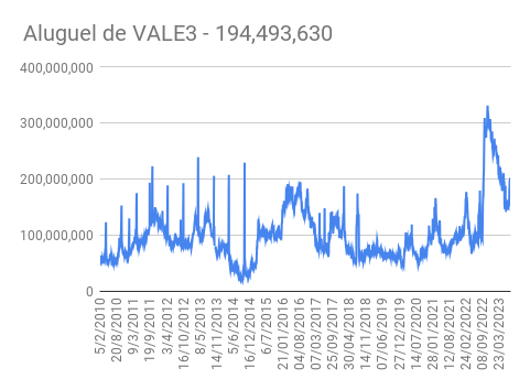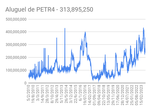 Este é um dado que acompanho diariamente, serve para que eu veja o “peso” extra que existe sobre estas ações. Normalmente – veja bem, normalmente … – um aumento na posição alugada pode significar um movimento de queda no papel. E o contrário também é verdadeiro, uma cobertura pode significar um movimento de alta.