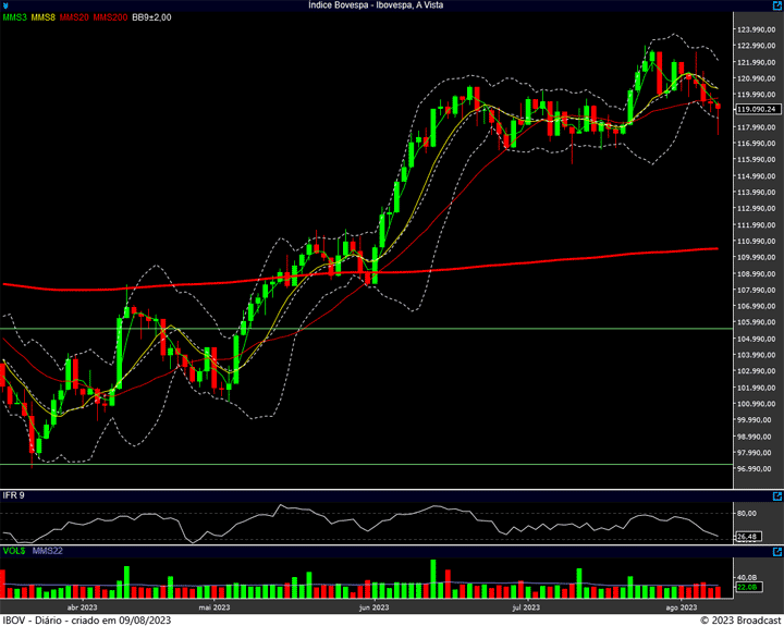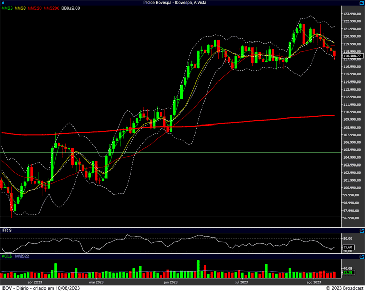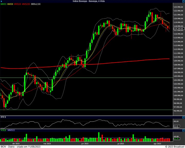 Não se lembra ? Eu repito: suporte na região dos 117.500 pontos, resistência na região dos 119 mil pontos.