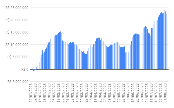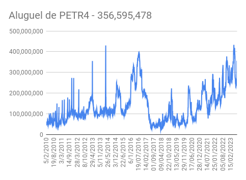 Este é um dado que acompanho diariamente, serve para que eu veja o “peso” extra que existe sobre estas ações. Normalmente – veja bem, normalmente … – um aumento na posição alugada pode significar um movimento de queda no papel. E o contrário também é verdadeiro, uma cobertura pode significar um movimento de alta.