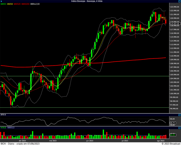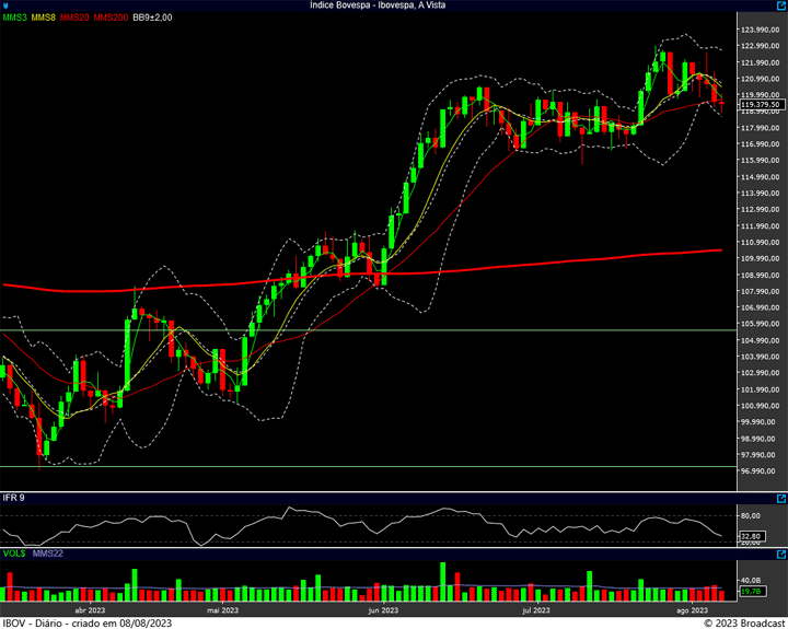 Os números da segunda são bem parecidos com o da primeira. Máxima no 122.600 e mínima nos 119.200 pontos.