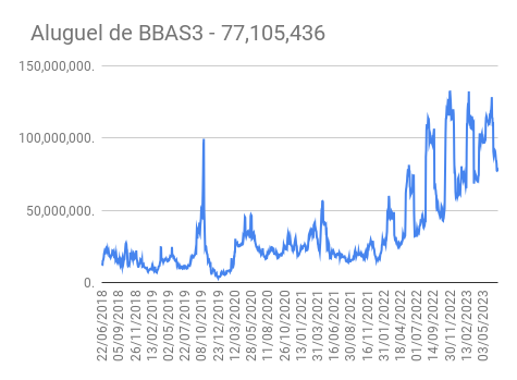 Este é um dado que acompanho diariamente, serve para que eu veja o “peso” extra que existe sobre estas ações. Normalmente – veja bem, normalmente … – um aumento na posição alugada pode significar um movimento de queda no papel. E o contrário também é verdadeiro, uma cobertura pode significar um movimento de alta.