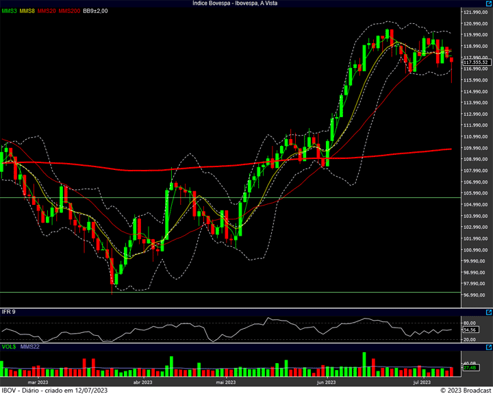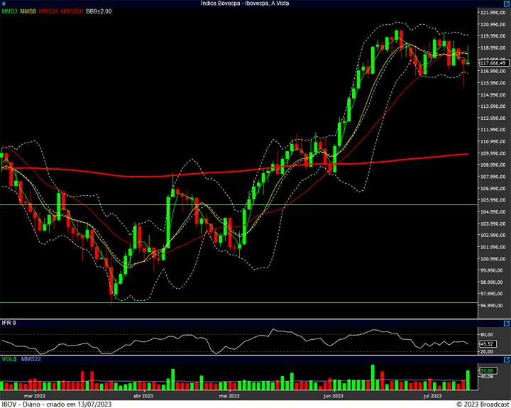 Suporte nos 116 mil pontos, resistência nos 120 mil pontos, e a Zona de Guerra dos 118 mil.