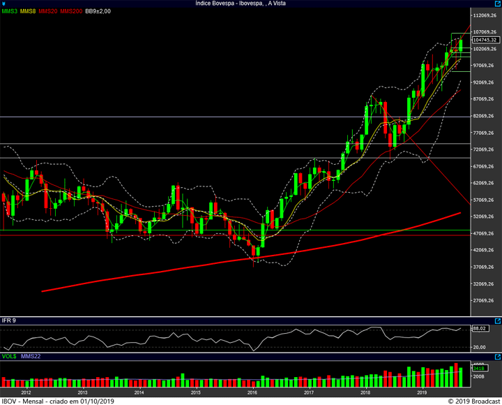 Sim, até o momento o Sell in may and go away de 2019 está ganhando um ponto negativo. Partimos dos 96.353 e estamos +8,71% acima.