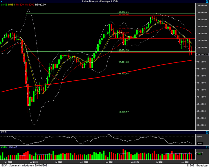 Testaremos o suporte na região dos 93.400 pontos ? Ou a região dos 100k, que é onde está a média de 200, irá segurar ?