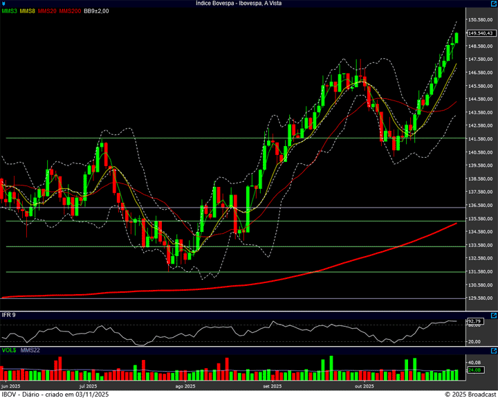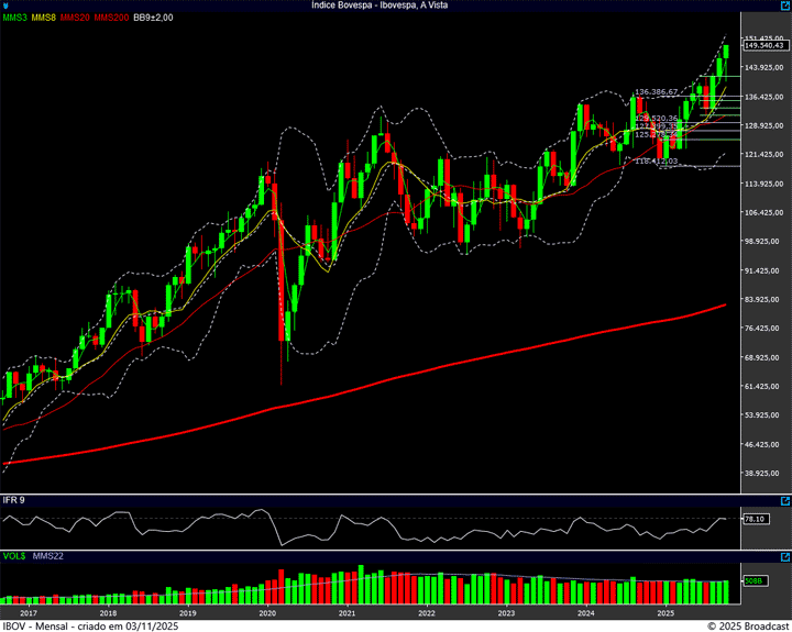 Mas, como já disse, seguimos subindo. E enquanto a região dos 140 mil pontos não for ameaçada (o último fundo), a tendência permanece viva. Firme e forte.
