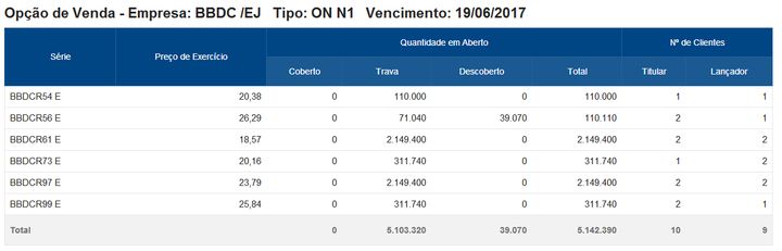 Como exemplo, segue listagem de uma das séries disponíveis para as ações do tipo ON do Bradesco: