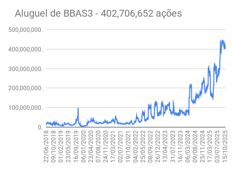 Este é um dado que acompanho diariamente, serve para que eu veja o “peso” extra que existe sobre estas ações. Normalmente – veja bem, normalmente … – um aumento na posição alugada pode significar um movimento de queda no papel. E o contrário também é verdadeiro, uma cobertura pode significar um movimento de alta.