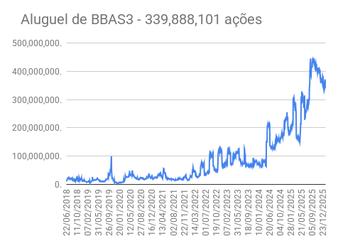 Este é um dado que acompanho diariamente, serve para que eu veja o “peso” extra que existe sobre estas ações. Normalmente – veja bem, normalmente … – um aumento na posição alugada pode significar um movimento de queda no papel. E o contrário também é verdadeiro, uma cobertura pode significar um movimento de alta.