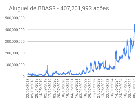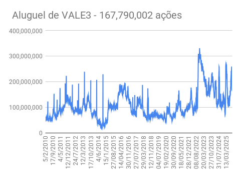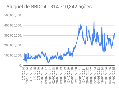 Este é um dado que acompanho diariamente, serve para que eu veja o “peso” extra que existe sobre estas ações. Normalmente – veja bem, normalmente … – um aumento na posição alugada pode significar um movimento de queda no papel. E o contrário também é verdadeiro, uma cobertura pode significar um movimento de alta.