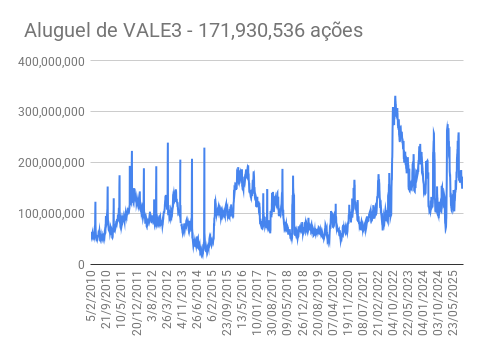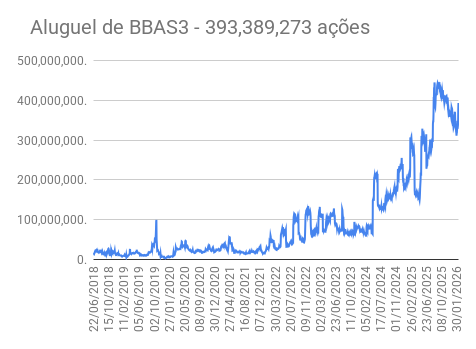 Este é um dado que acompanho diariamente, serve para que eu veja o “peso” extra que existe sobre estas ações. Normalmente – veja bem, normalmente … – um aumento na posição alugada pode significar um movimento de queda no papel. E o contrário também é verdadeiro, uma cobertura pode significar um movimento de alta.