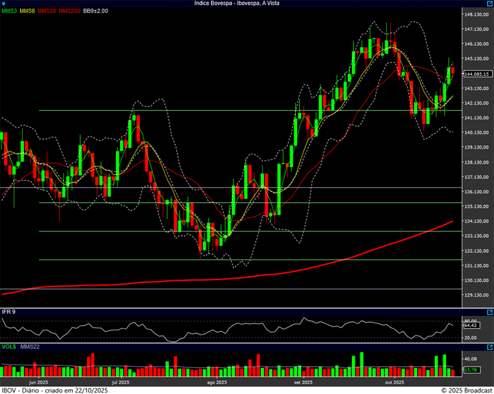 Suporte no 140.200 pontos. Resistência no 145.200 pontos. No meio disso, é apenas ruído …