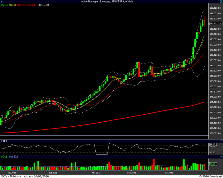 A resistência está no nosso novo ATH, 186.500 pontos. enquanto o suporte é o nosso querido 181.900 pontos. (tá, se quiser ser xiita, 181.500 pontos)