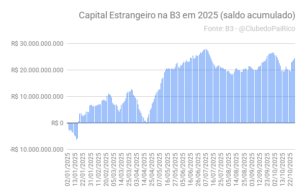 No ano de 2025, o saldo está positivo em R$24,526 bilhões.